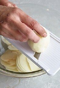 鶏肉は一口大のそぎ切りにして塩、こしょう各少々をふり、薄力粉を薄くまぶす。ブロッコリーは小さめの小房に分ける。じゃがいもは皮をむいて2~3mmの薄切りにする(あればスライサーで。水にさらさない)。