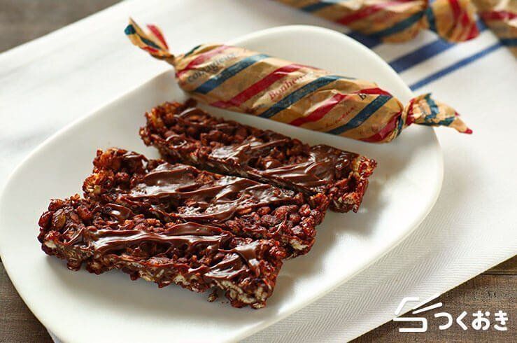 電子レンジでつくれるお手軽チョコバーレシピ。チョコレートを絡めた、食感のいいグラノーラが絶品です。冷蔵庫や冷凍庫で保存できるので、ちょっとしたおやつ用に多めにつくっておくと◎。