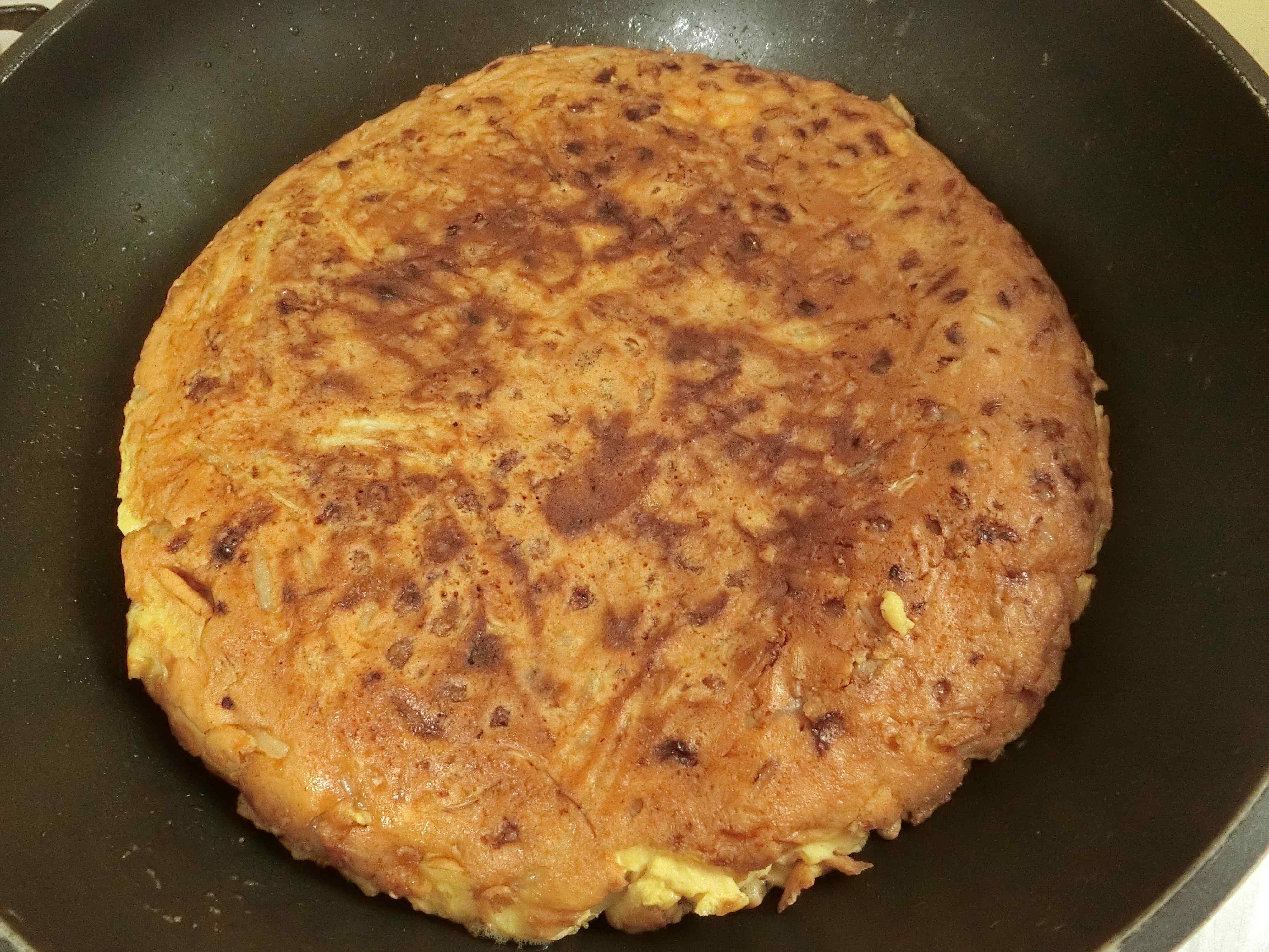 3.片面が固まったら、お皿などを使ってひっくり返します。裏面を2~3分しっかり焼いたら完成。