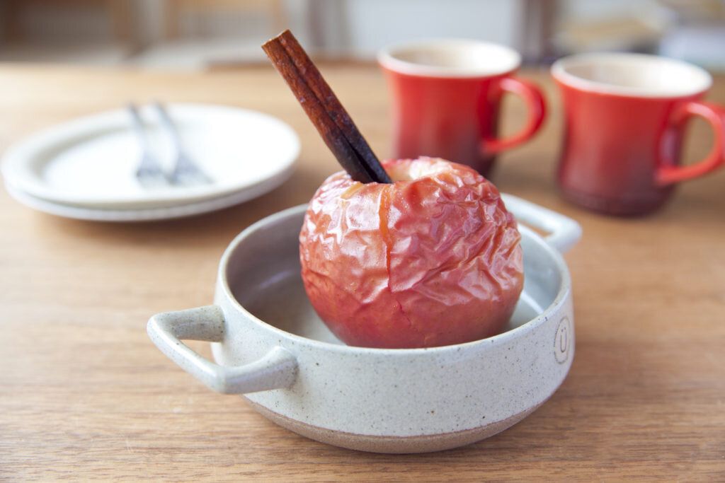 リンゴを丸ごと1個焼いた、焼きリンゴのレシピ。オーブンでじっくり焼いて、とろとろ食感に仕上げます。リンゴ本来の香りや甘みがぐっと引き出されるので、ぜひゆっくりと味わいたい一品です。