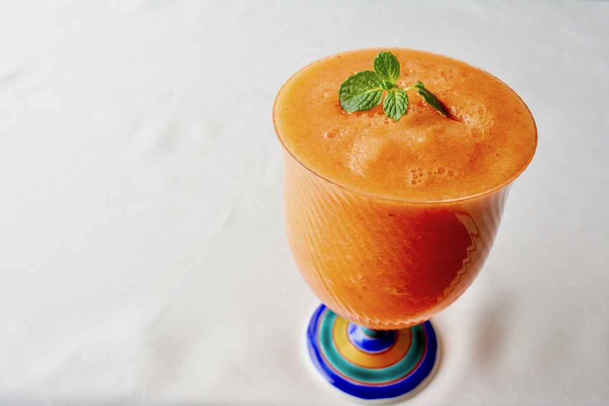 リンゴとにんじんを使った、やさしい甘さのスムージーです。朝やおやつの時間に飲むと、ちょっぴりぜいたくな気分を味わえます。手軽に栄養補給ができるので、野菜不足が気になるときにも◎。