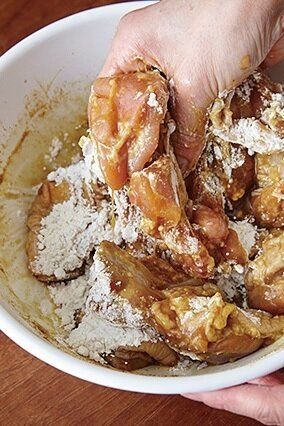 ボウルに鶏肉、[A]を入れ、よくもみ込む。