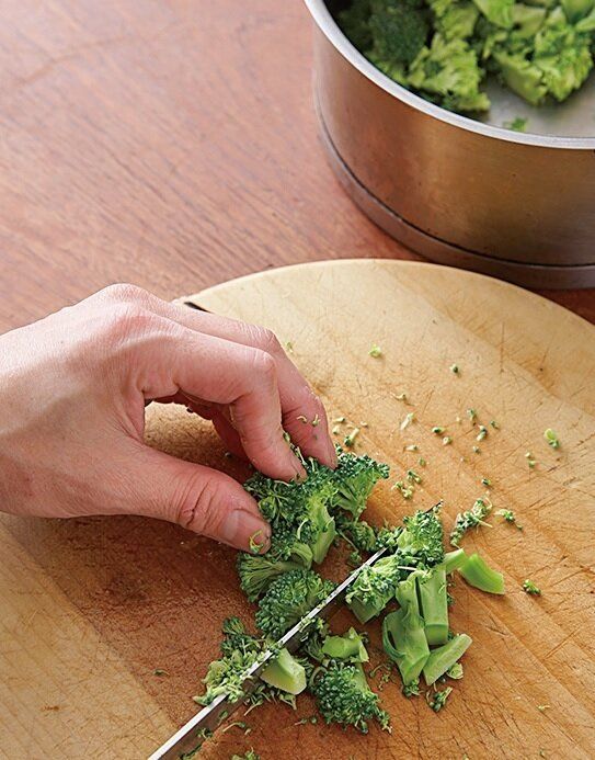 ブロッコリーは2cm大にザクザクと切って鍋に入れる。