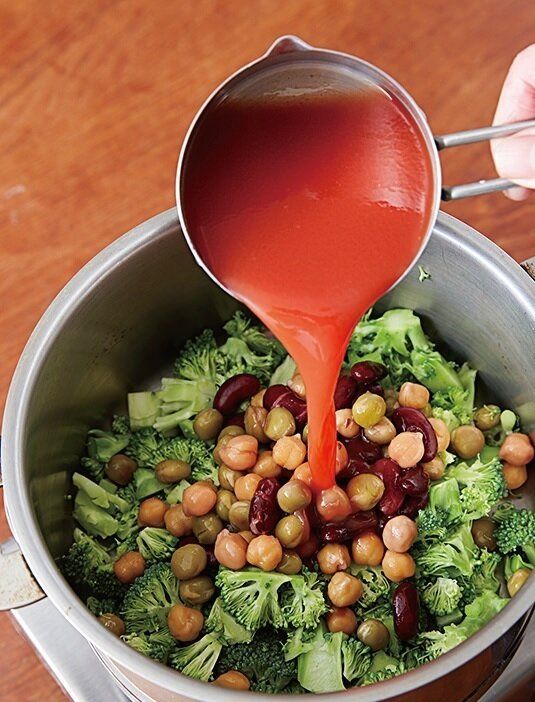つぶつぶの食感♪ブロッコリーとミックスビーンズのトマトスープ
