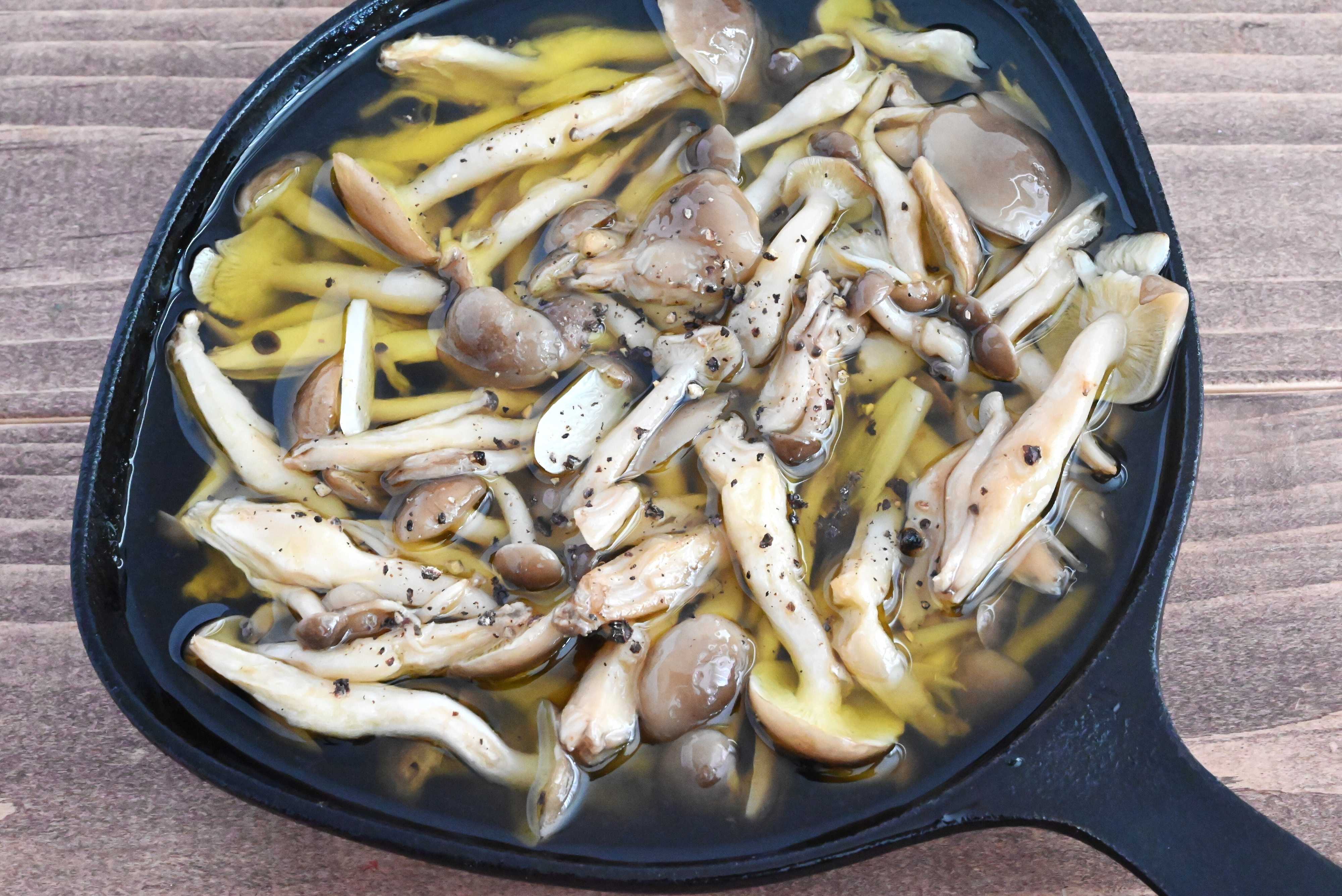 しめじだけで作れるアヒージョのレシピです。
