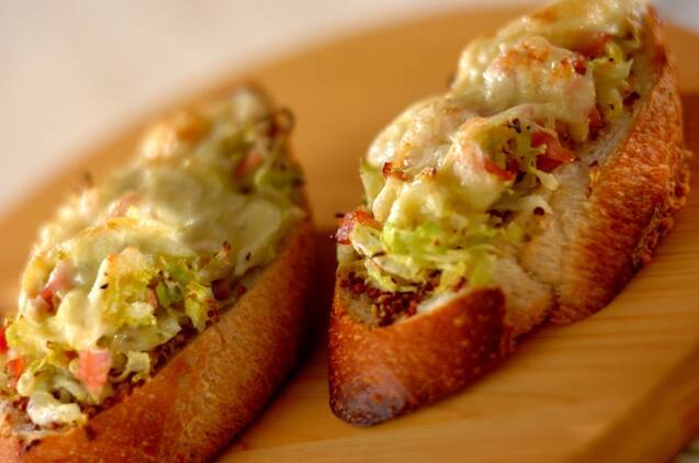 炒めキャベツのオープンサンド