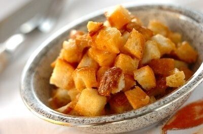 料理であまりがちなフランスパンの切れ端を使って、おいしいラスクが簡単につくれます。キャラメルの甘さがとてもおいしく、ぱくぱく食べ進めたくなるレシピです。