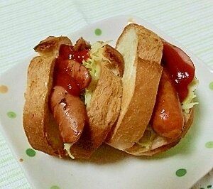 トーストしたフランスパンに、キャベツとウインナーをたっぷりはさんだ、食べごたえバツグンなサンドイッチレシピ。塩気のある具材と、酸味のあるケチャップが絶妙にマッチします。ホットサンドなので、アツアツが◎。