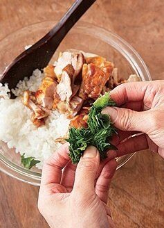 青じそをご飯に混ぜるのは大正解!鶏の照り焼き混ぜご飯