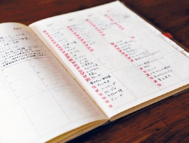 会話のなかで子どもたちから「あれ食べたい」とリクエストされたメニューや、作って人気だったおかずを手帳にメモしておくのが習慣。献立に迷ったときに見返すと、アイデアがわいてきます。