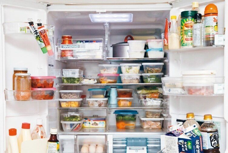 べんとうは、夕ごはんを盛りつけるついでに、べんとう箱に詰めて冷蔵室へ。翌日、職場にある電子レンジで温めて食べます。