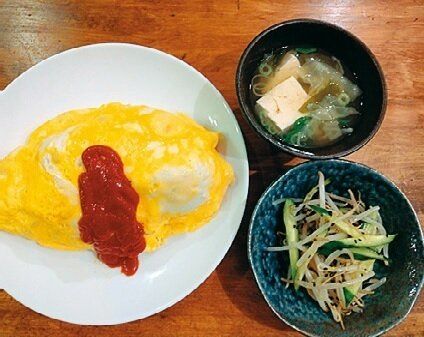 作り置きのひき肉だね&玉ねぎ炒めを使ったオムライス。NO包丁&まな板デー。