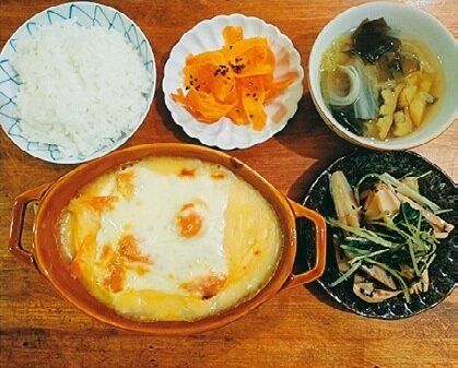 寒かったので、シチューにスライスチーズをのせてグリルでこんがり焼きました!
