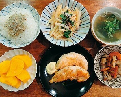 おからパウダーをまぶして、フライパンで揚げ焼きにしたヘルシーチキンカツ。