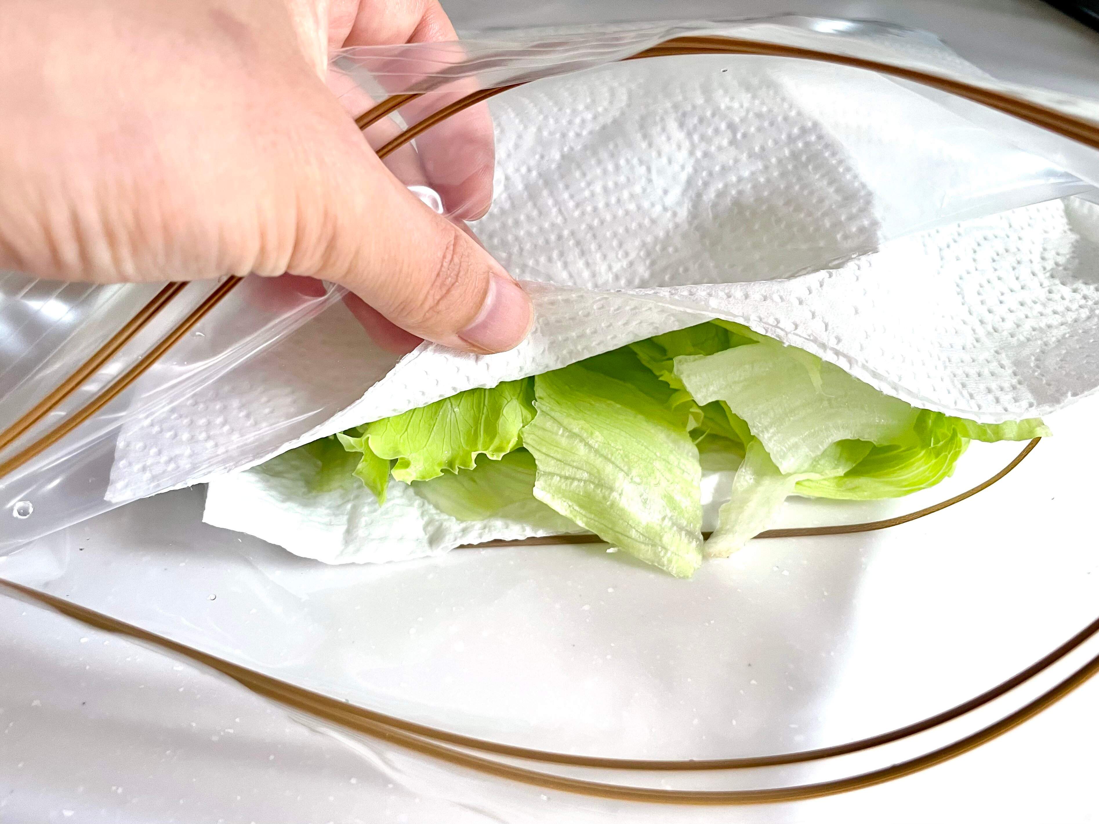 大きい保存容器がない場合は、ジッパー付きの保存袋にキッチンペーパーを入れて保存してもOKです。