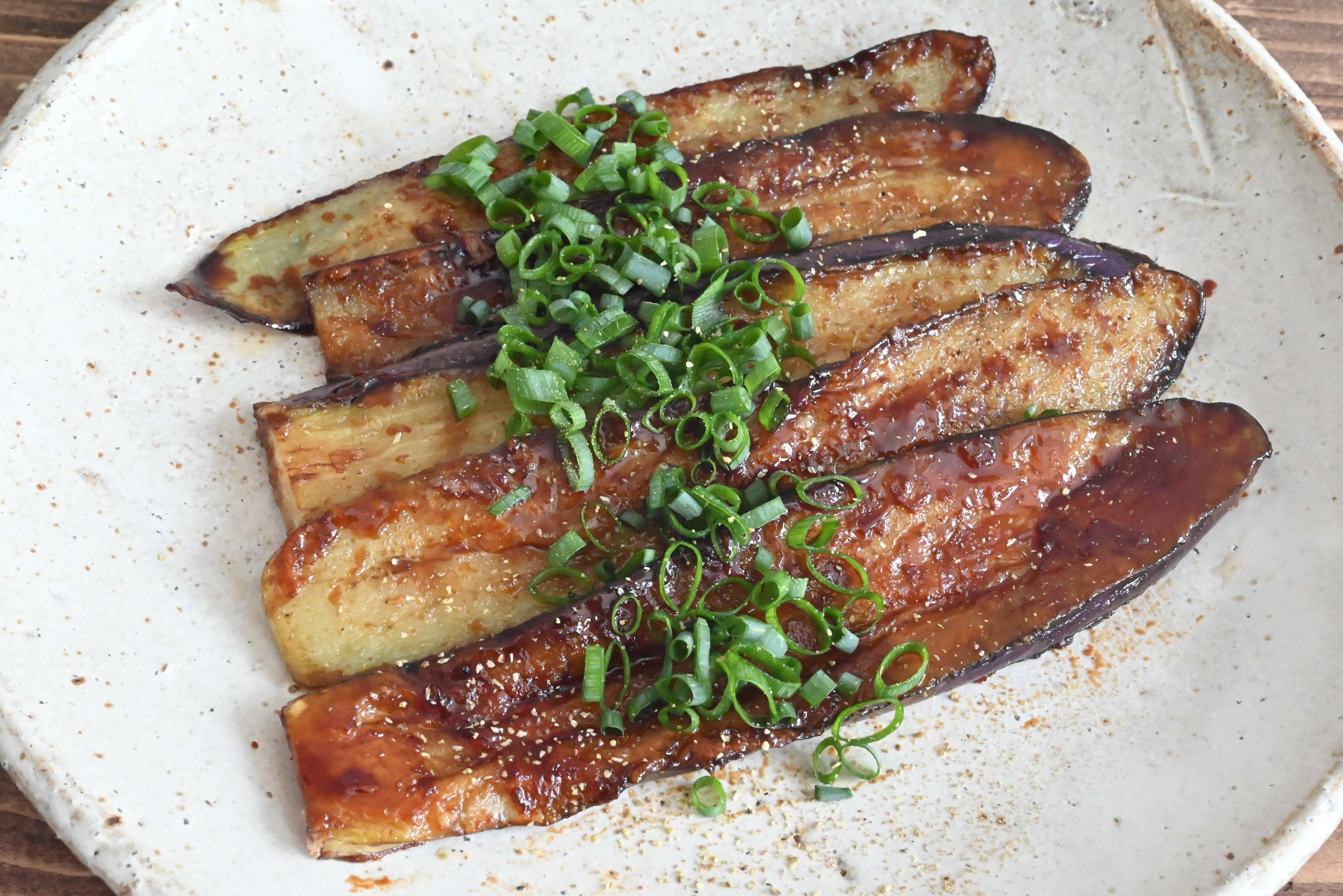 甘辛いたれとなすと絡まり、箸が止まりません!