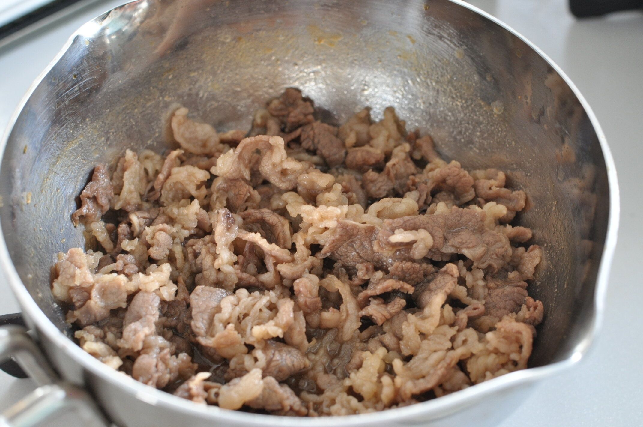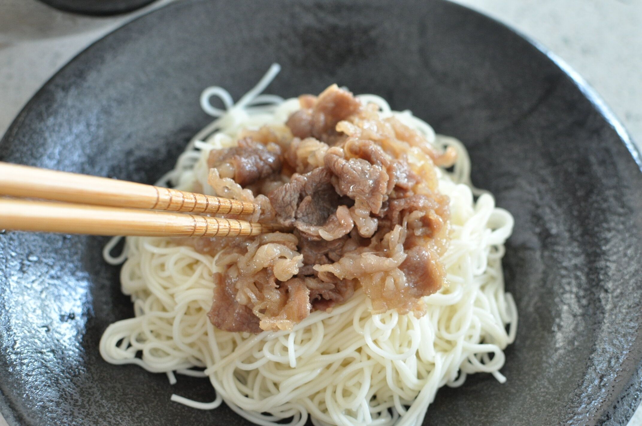 できあがり!牛肉は濃いめの味付けで、そうめんとも相性抜群です。