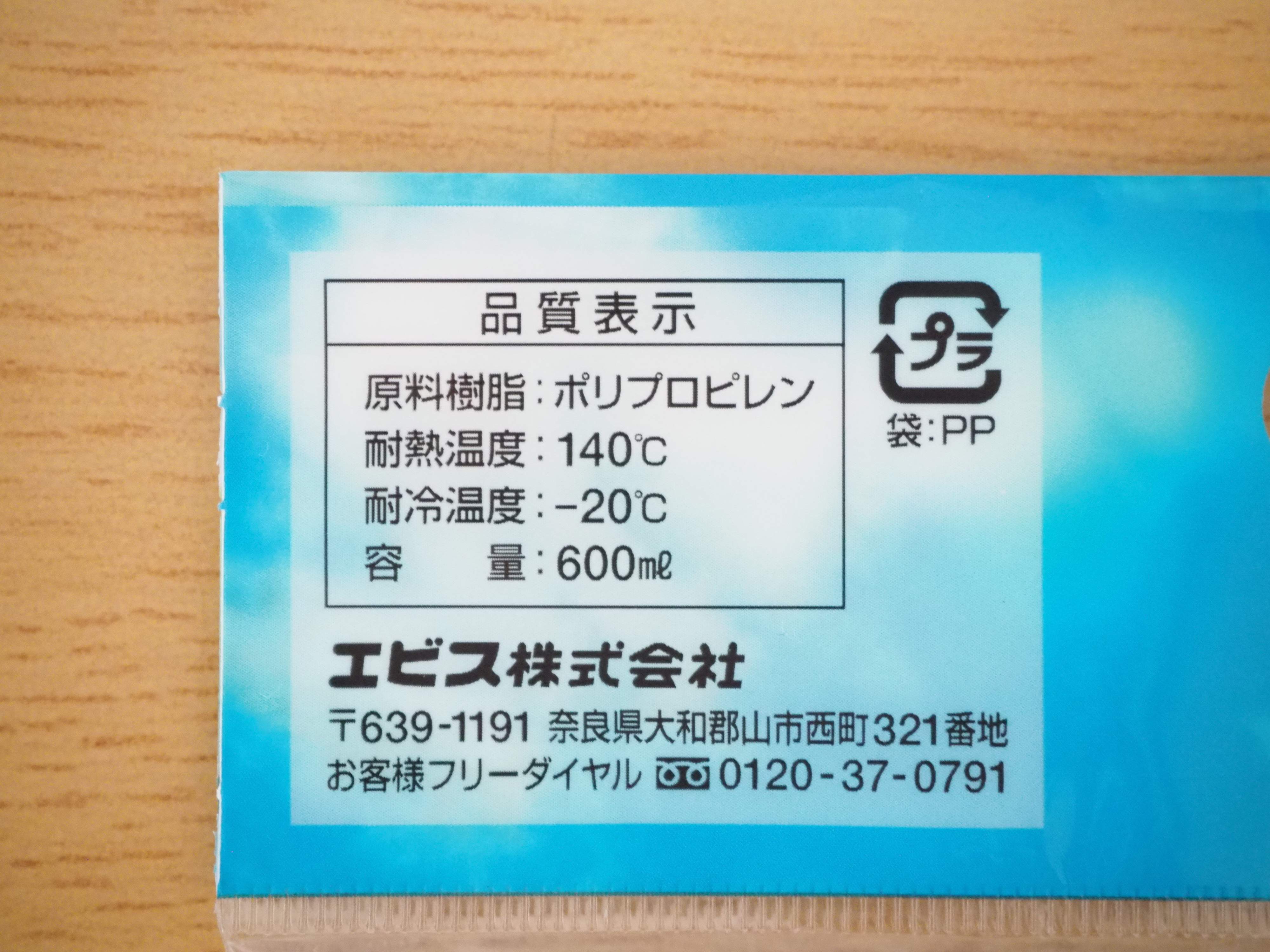 材料はポリプロピレン製で、耐熱温度は140℃、耐冷温度は-20℃、容量は600mLです。