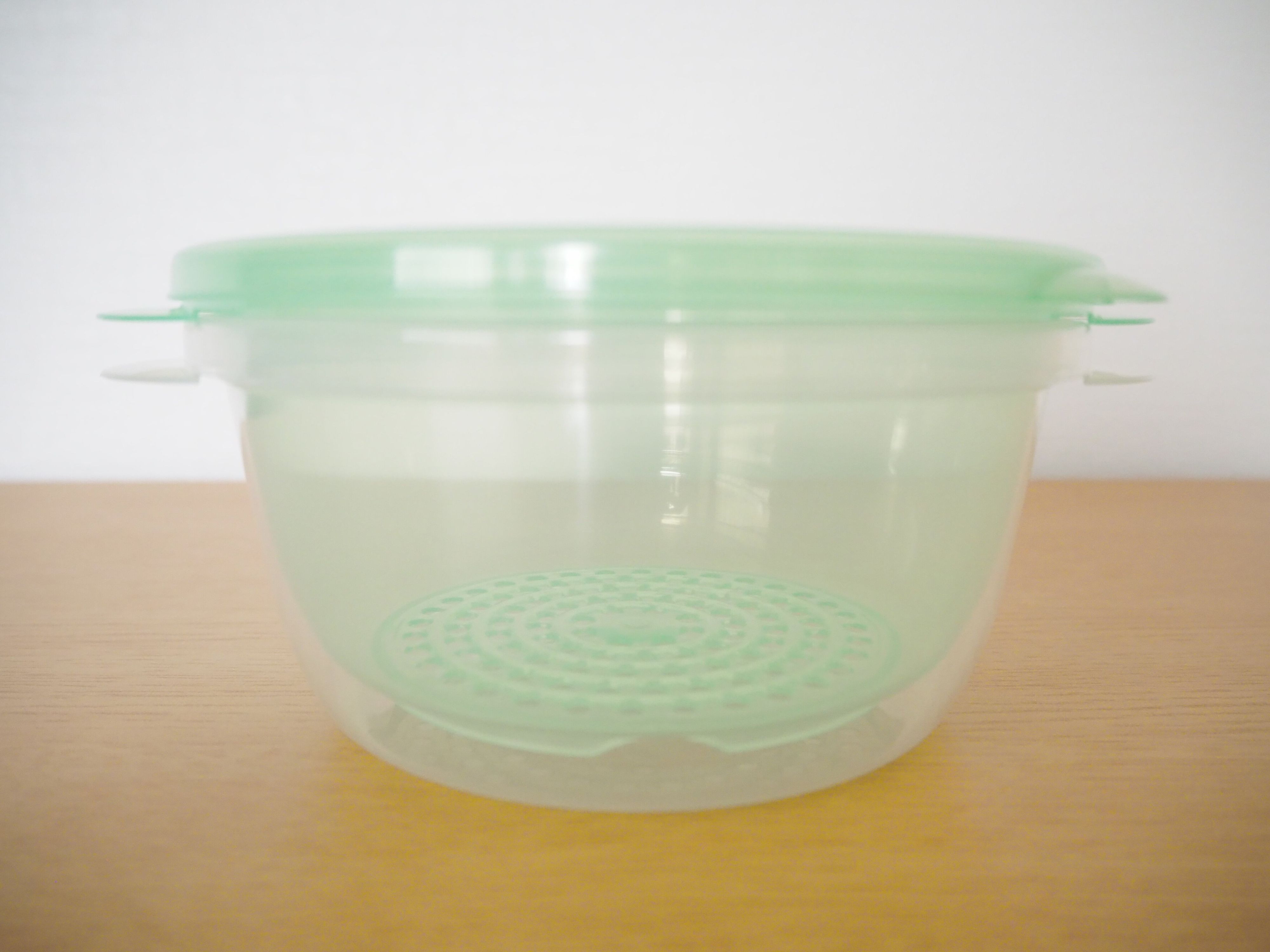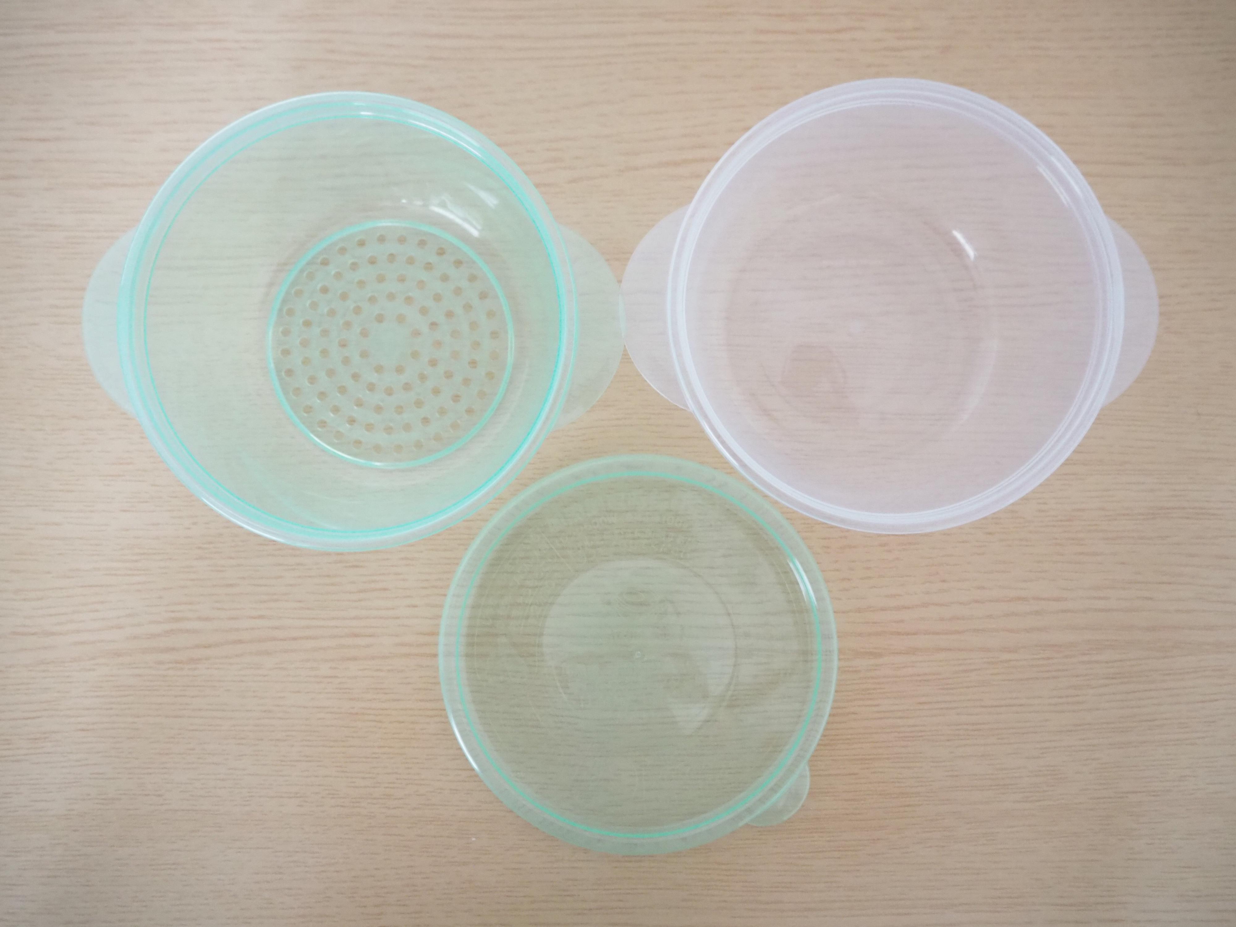 実はフタ、ザル、容器の3つから構成されています。ザルがあることで簡単に水切りができるだけでなく、圧力効果が生まれて、おいしく蒸すことができるそう!