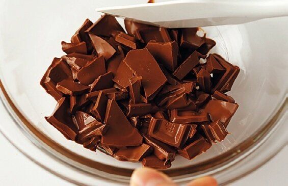 耐熱ボウル(直径15cm)にチョコレートを割って入れ、ふんわりとラップを掛けて電子レンジ(600W)で1分20秒加熱する。