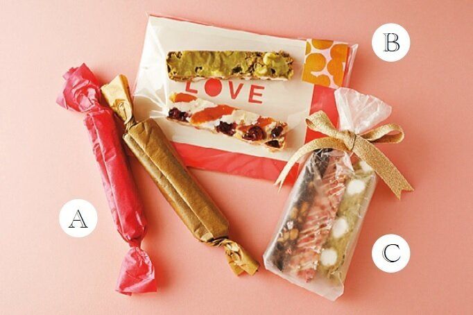 チョコバーを1本ずつ包んだり、2~3種類を透明の袋に入れたり、ラッピングのアイデアをご紹介。