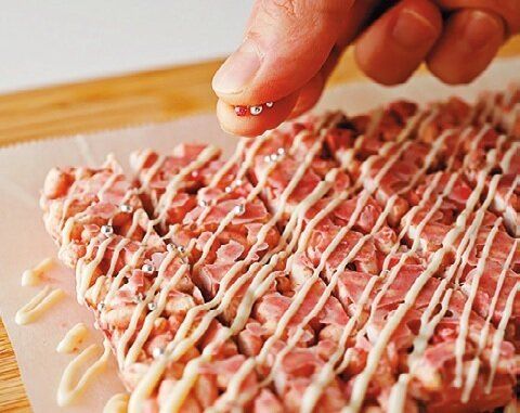 *1回切るごとに包丁の刃を湯につけて温め、湯を拭き取ってから切ると、断面がきれいに切れる。