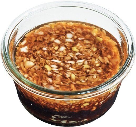 「これ、わが家でいちばんリピしてるたれなんです。基本形はここで紹介しているとおりなんだけど、気分しだいでいろいろアレンジしちゃう。例えば、暑い時季なら酢を増やしたり、コクを出したい日はしょうゆを減らしてオイスターソースをたしたり。ナンプラーやたたいた梅干しを加えてもいいし……。つまりね、この薬味だれをはじめ自家製だれの魅力って、自由度の高さだと思うんですよ」。