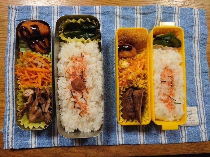 ちなみに私は平日に中高生用のお弁当(時々大学生も)+土日に大学生用の弁当(バイト用)+時々義父への差し入れを作っています。