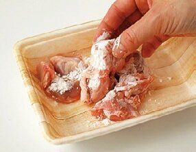 鶏肉には片栗粉をまぶしておくと味がからみやすい。