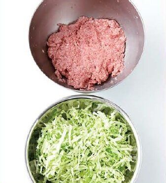 キャベツはせん切りにする。ボウルに、ひき肉、[A]を入れて練り混ぜる。粘りが出たらキャベツを加え、まとまるまでさらに練り混ぜる。