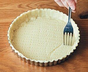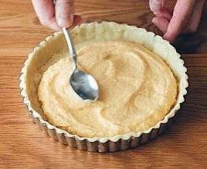 180℃のオーブンで40~45分焼く。タルト生地にこんがりとした焼き色がついたら焼き上がり。型からはずし、網の上でさまし、粗熱が取れたら粉砂糖をふる。