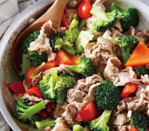 牛肉の色が変わったら[A]を加え、時々混ぜながら中火で3分ほど煮からめる。きぬさやを加え、さっと火を通す。好みで紅しょうがを添える。