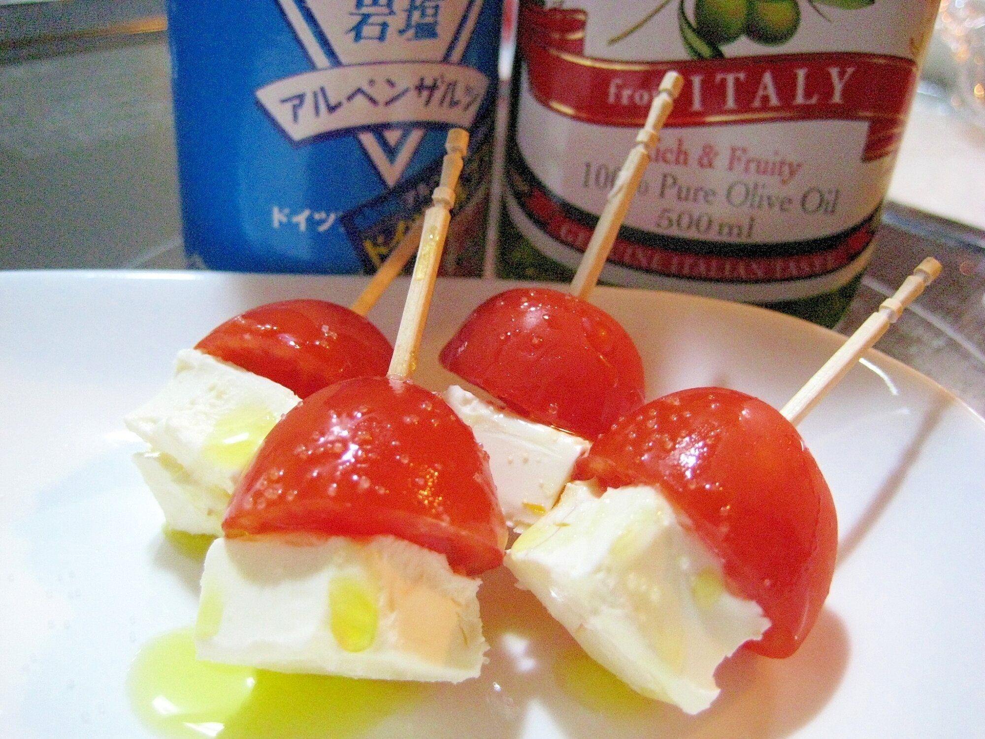 簡単旨い☆クリームチーズとプチトマトのピンチョス☆
