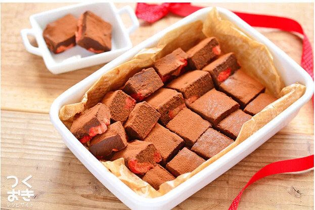 生クリームをつかった生チョコにフリーズドライのいちごをプラスすることで、食感の変化や酸味のアクセントが楽しめるようになっています。難しそうに思える生チョコも、火加減に気をつければ実は失敗しないので、初心者でもチャレンジしやすいです。