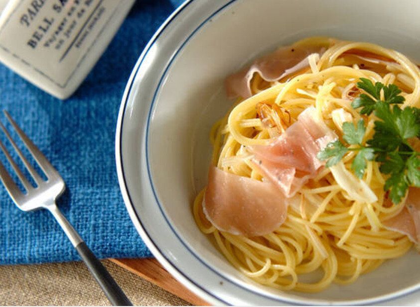 ネギのマリネと生ハムのパスタ