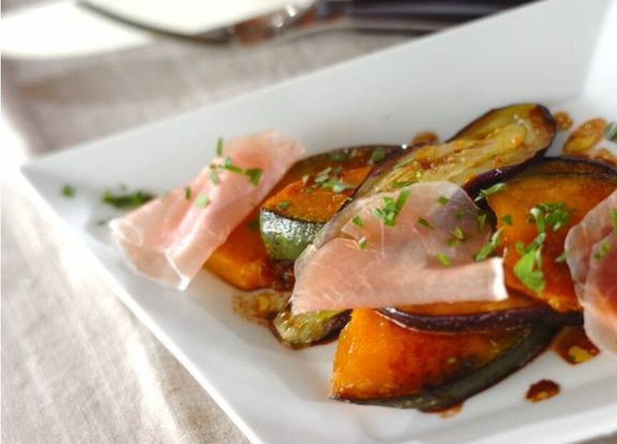 カボチャのソテー生ハムのせ
