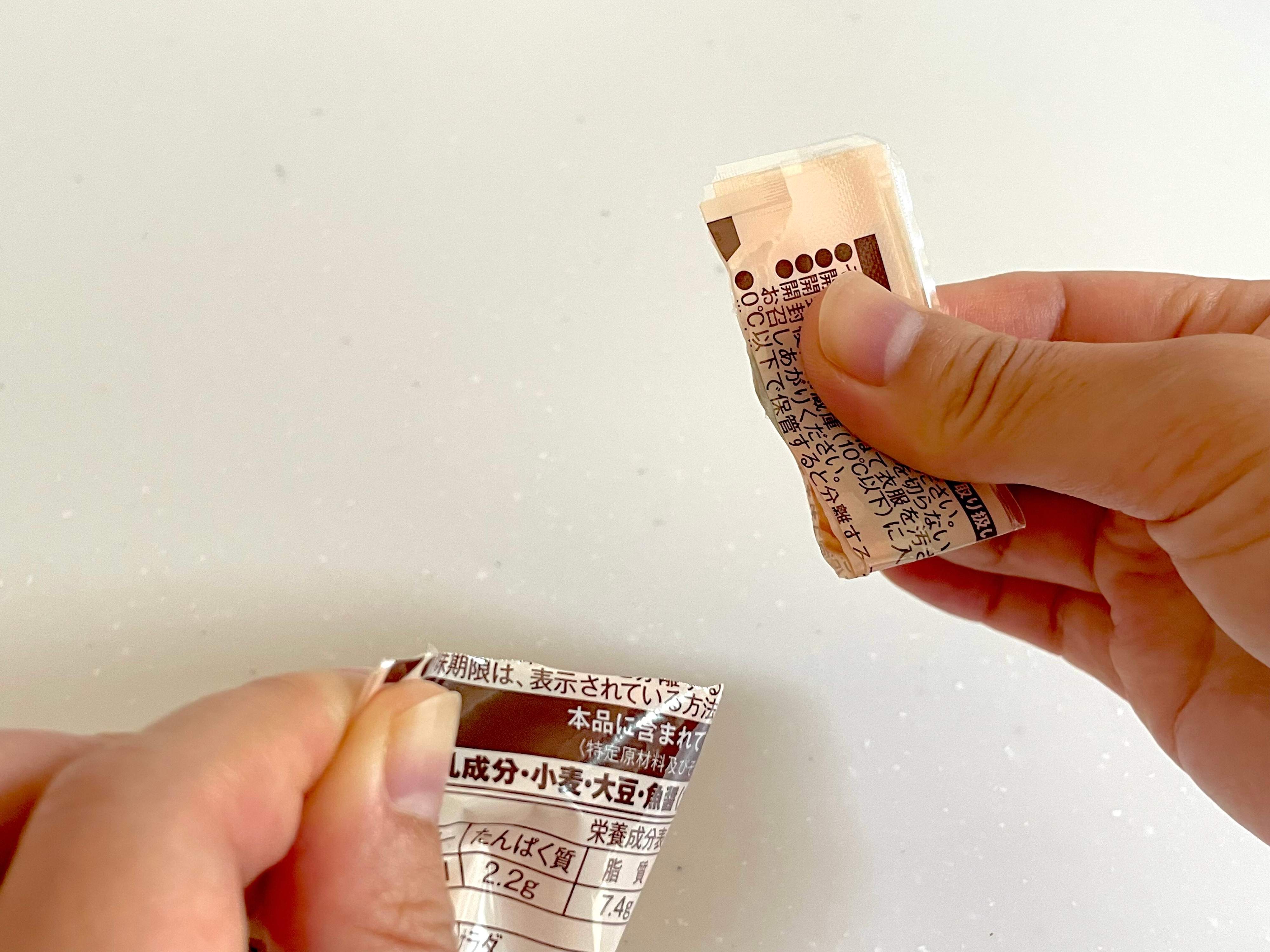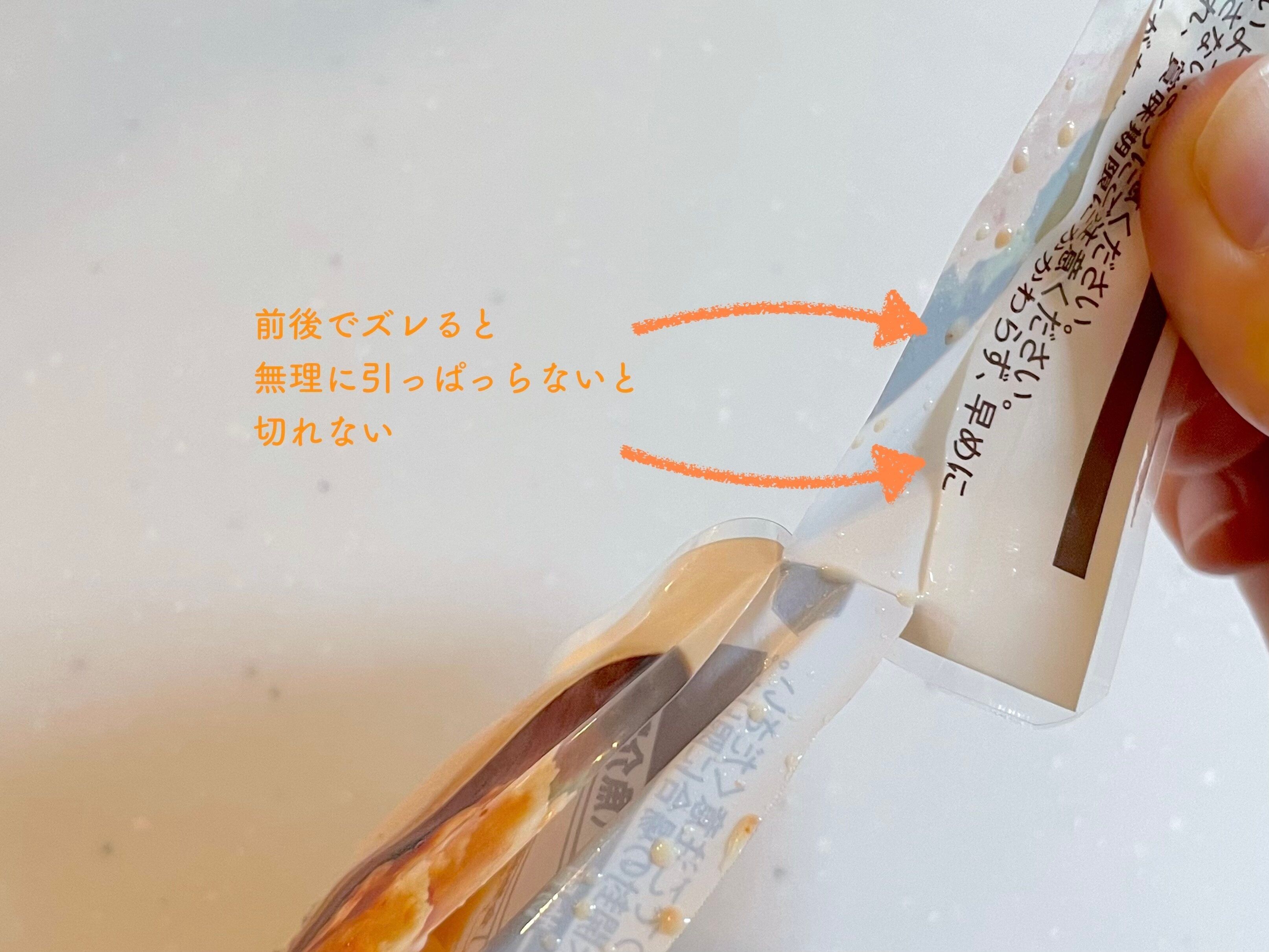そのため、最後は力ずくで引っ張って取るしかないのですが、そうすると中のソースが飛び散ります。