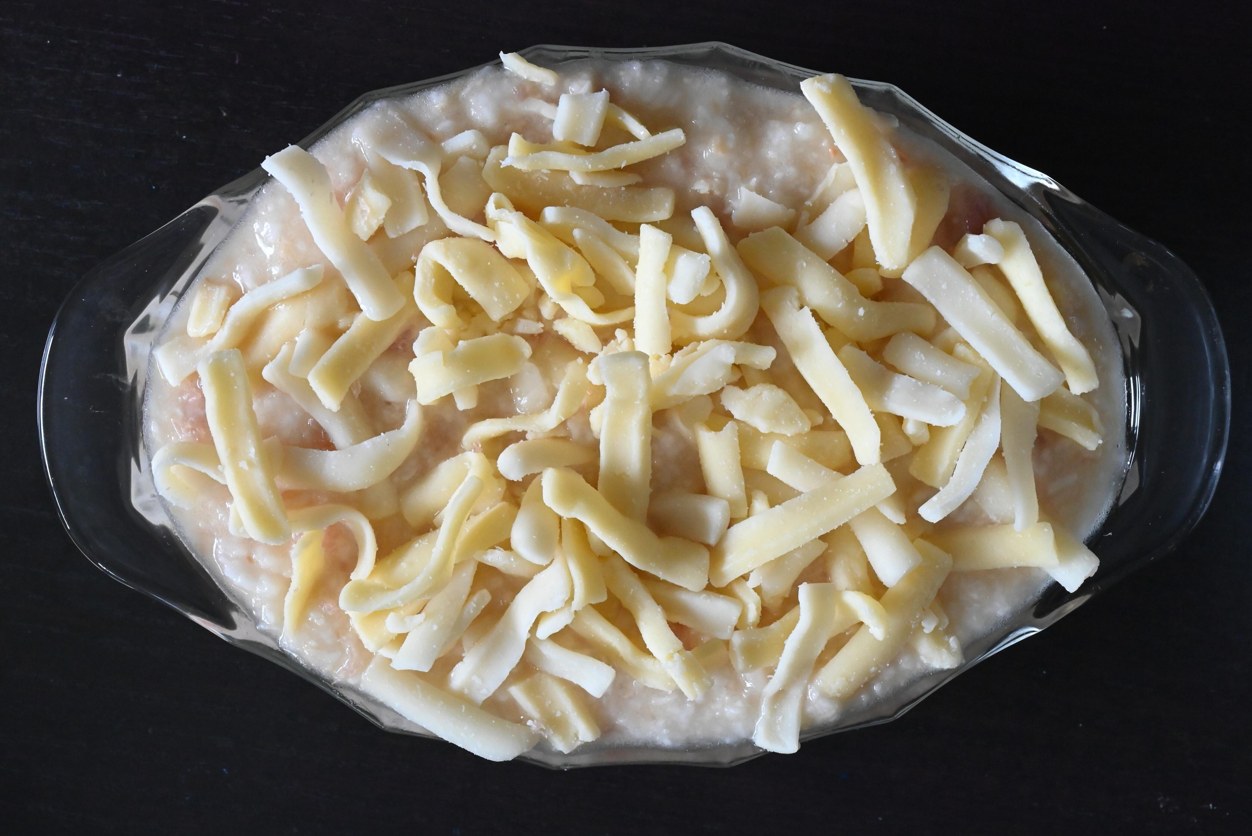 (6)魚焼きグリル(またはトースター)で、チーズに焼き色がつくまで加熱して完成。