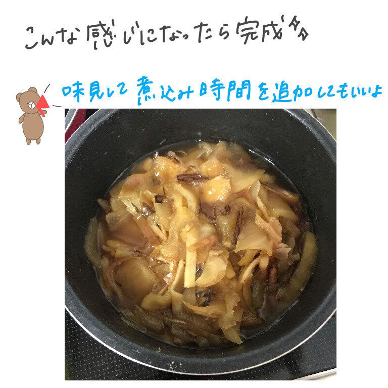 (3)水分が出たら1カップ分の水を加え火にかける