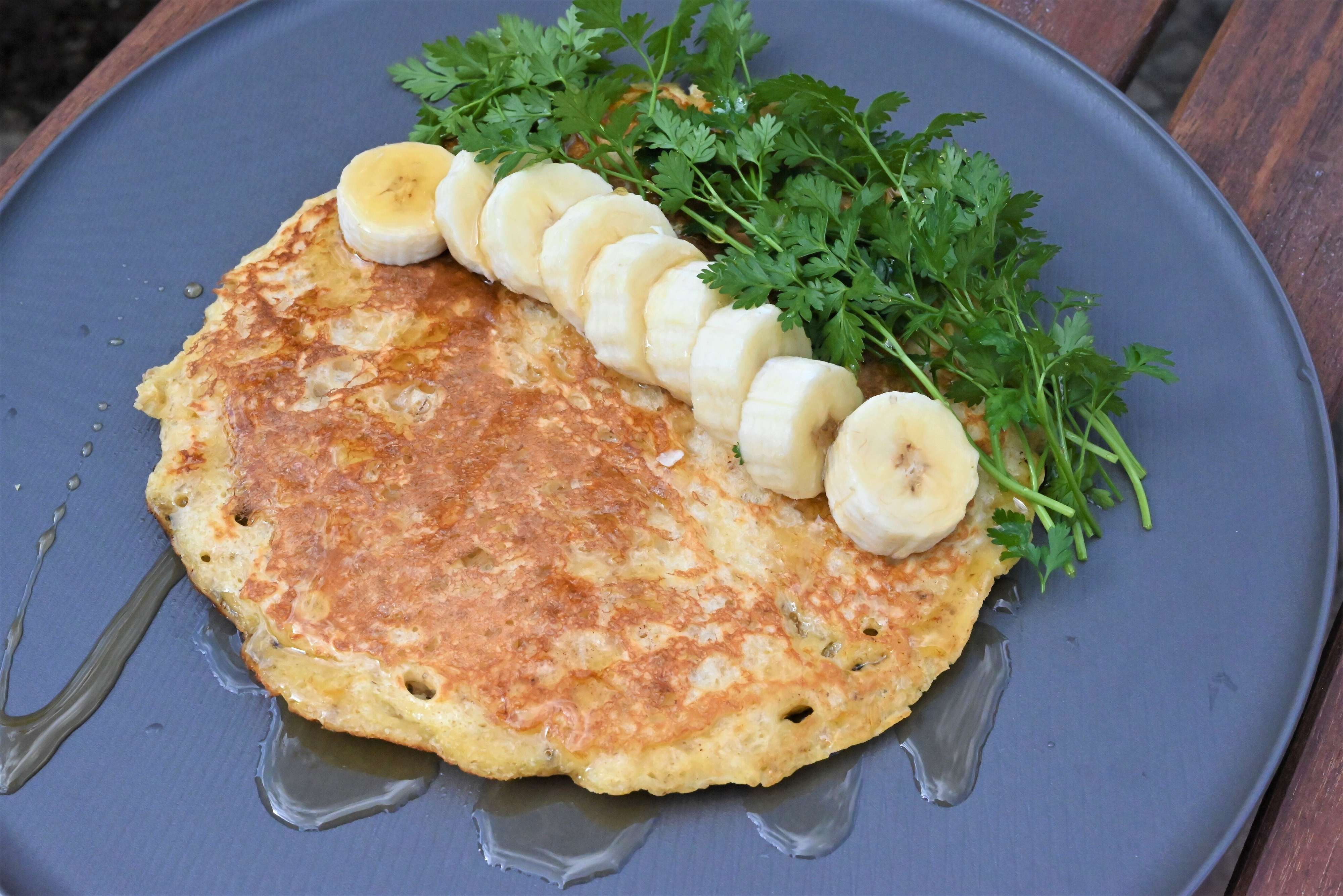 (5)フタをせず3分ほど加熱し、両面に焼き色がついたら取り出す。お好みでフルーツやハーブを添え、メープルシロップをかけて完成。