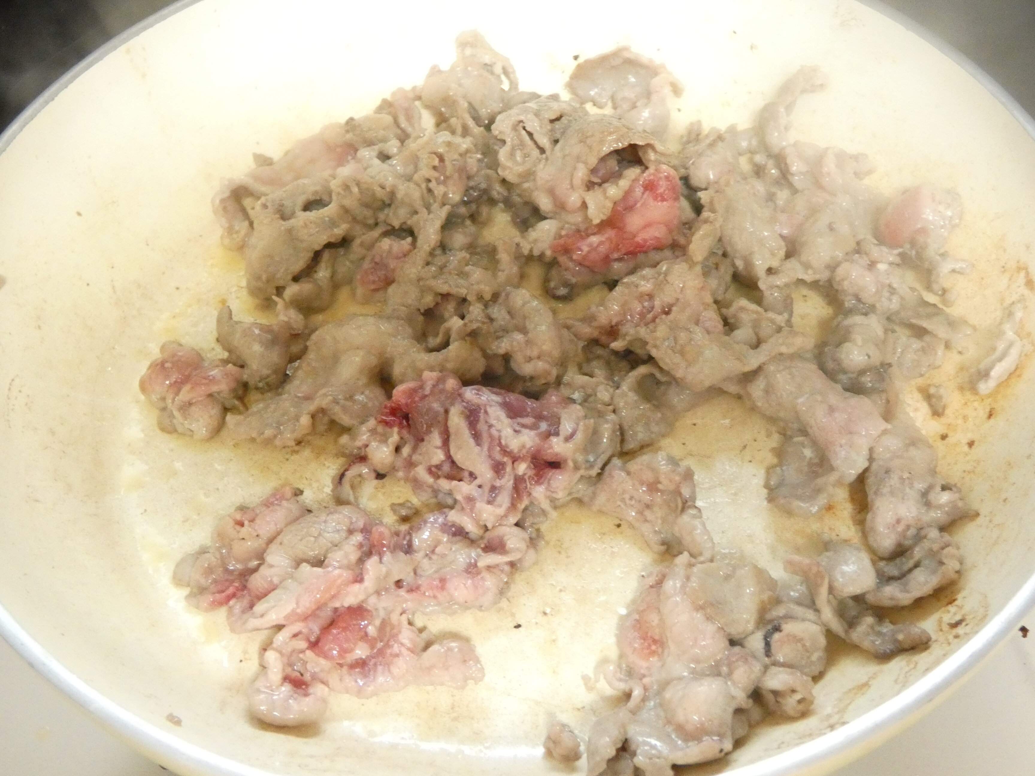 2.フライパンにバターと豚肉を入れて炒めます。