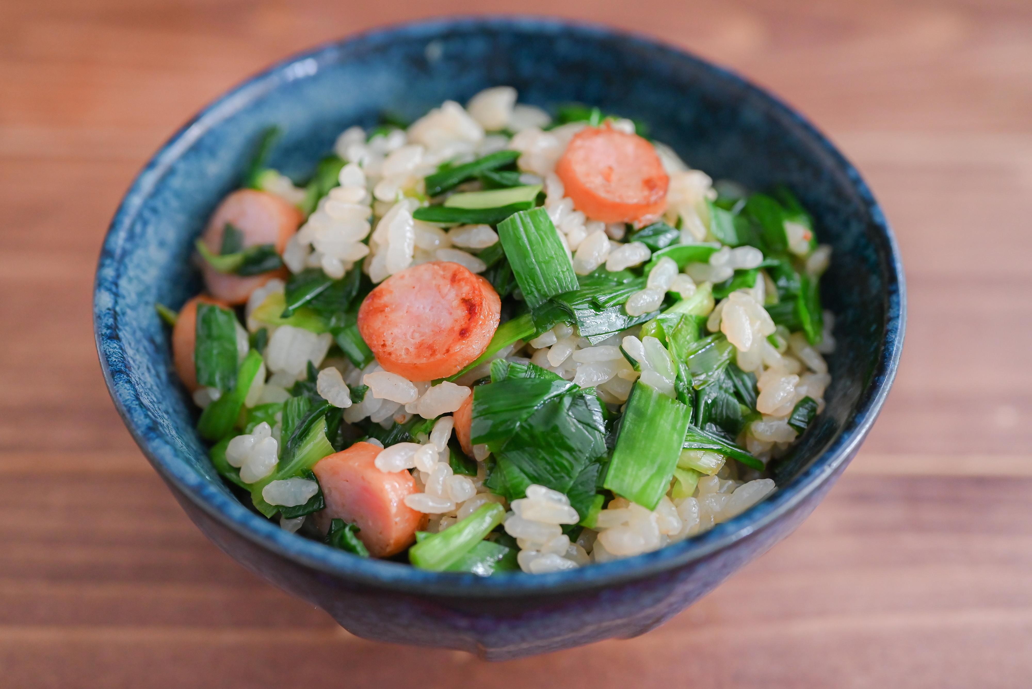 やみつき!にらとソーセージの混ぜごはん