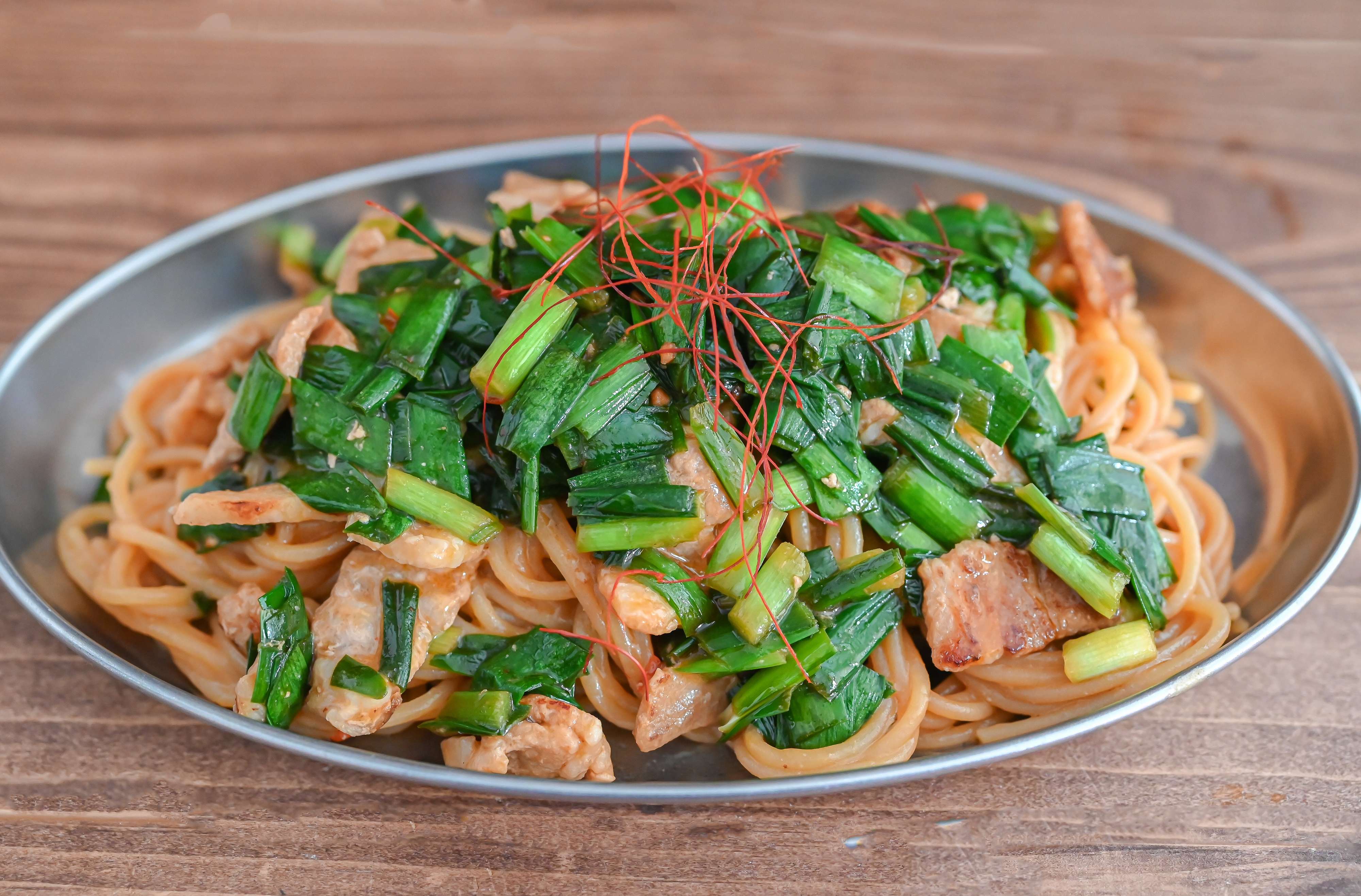 お酒のシメに♪にらと豚バラ肉の混ぜそば