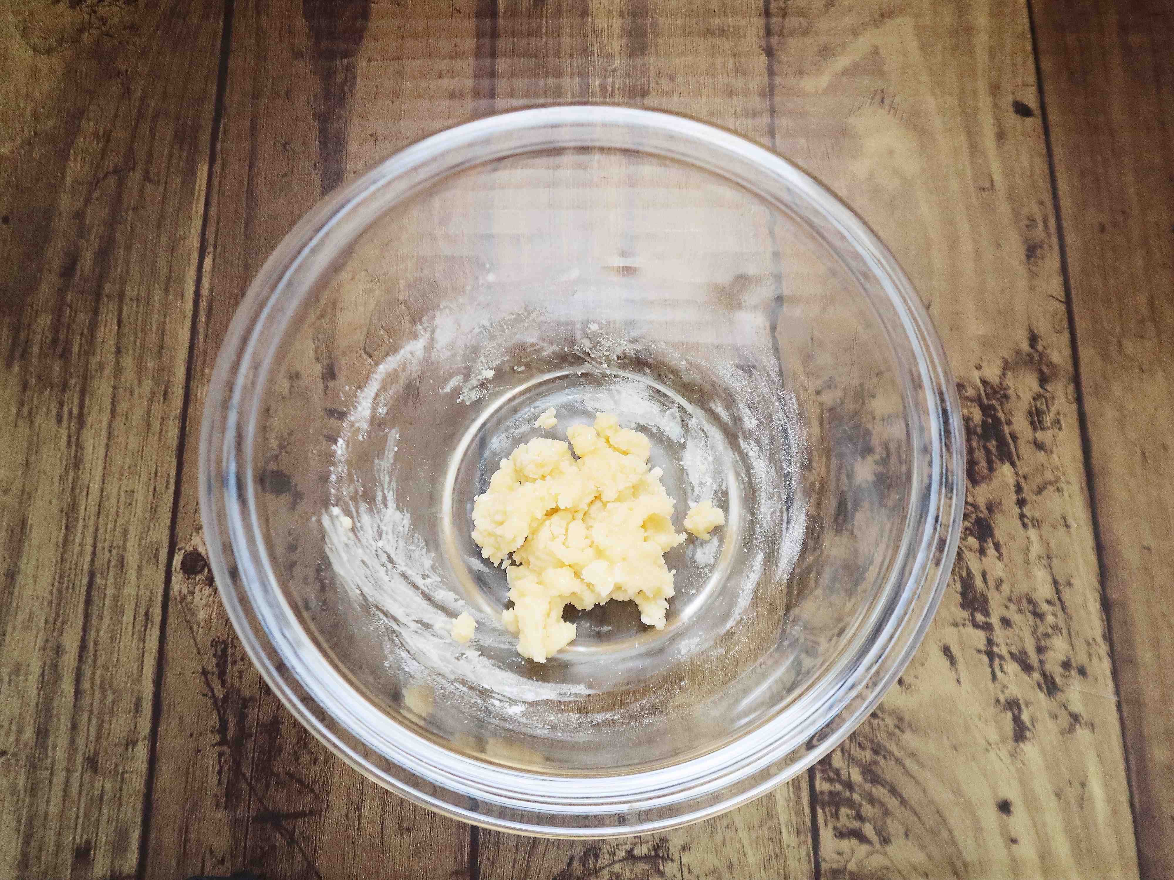 (1) 耐熱ボウルにバターと薄力粉を入れ、ふんわりとラップをしてレンジで600W×30秒加熱する。