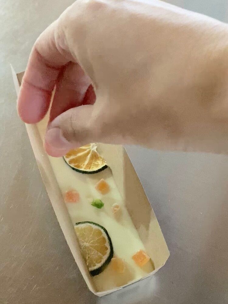 4.今回使用したトッピングは、ドライフルーツ、フリーズドライイチゴ、ピスタチオ、食用花です。ナッツやクッキー、マシュマロなどお好みでどうぞ。