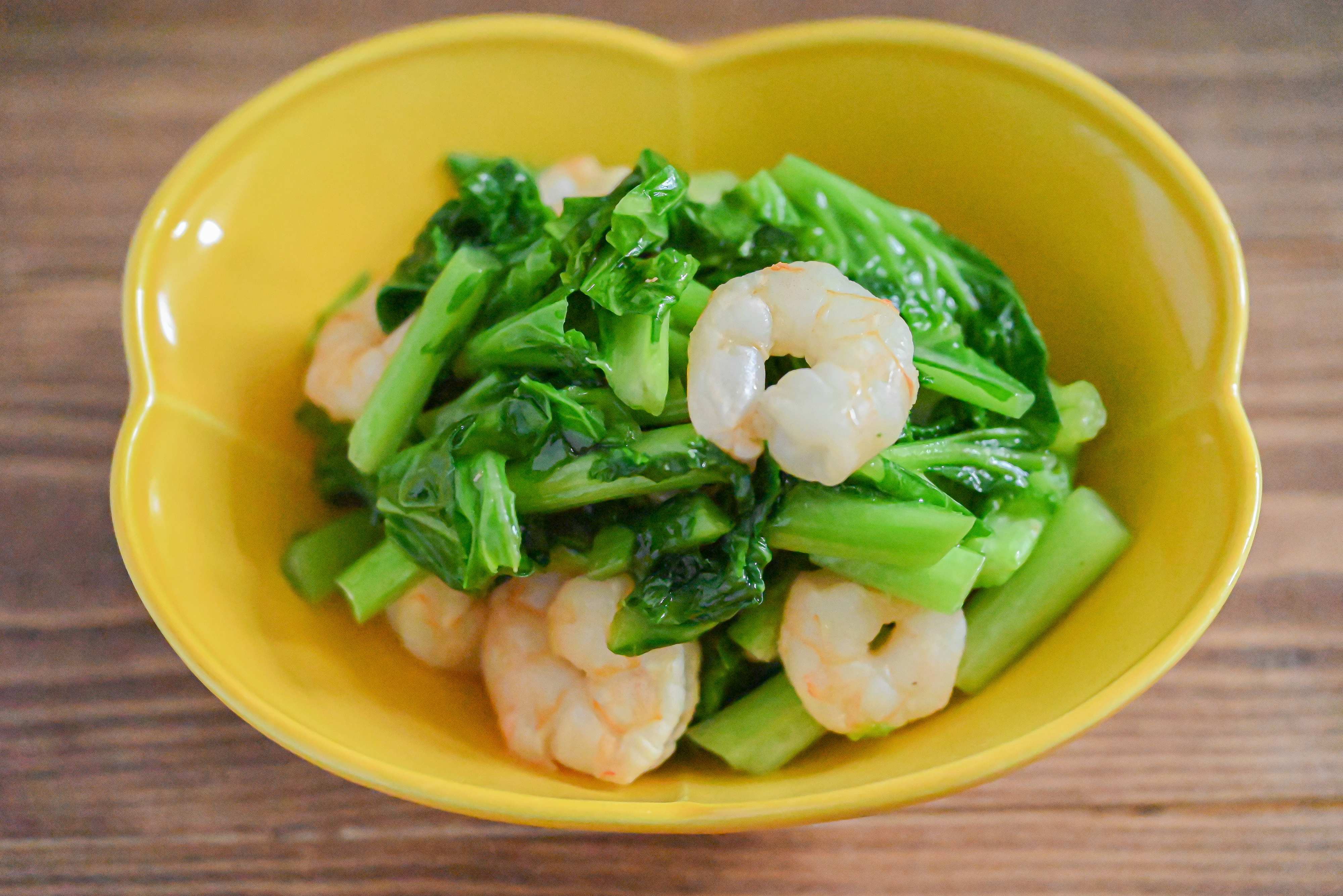 おつまみに♪えびとかき菜のオイスターソース炒め