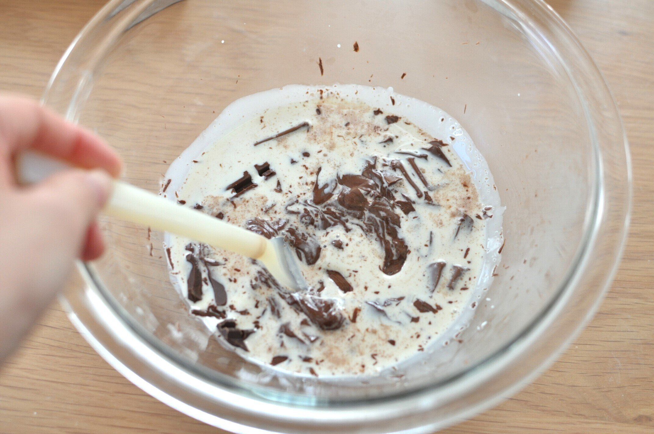 チョコは固形が残っていてもOK。余熱で溶けます。生クリームがフツフツと沸騰するくらいがベストです。