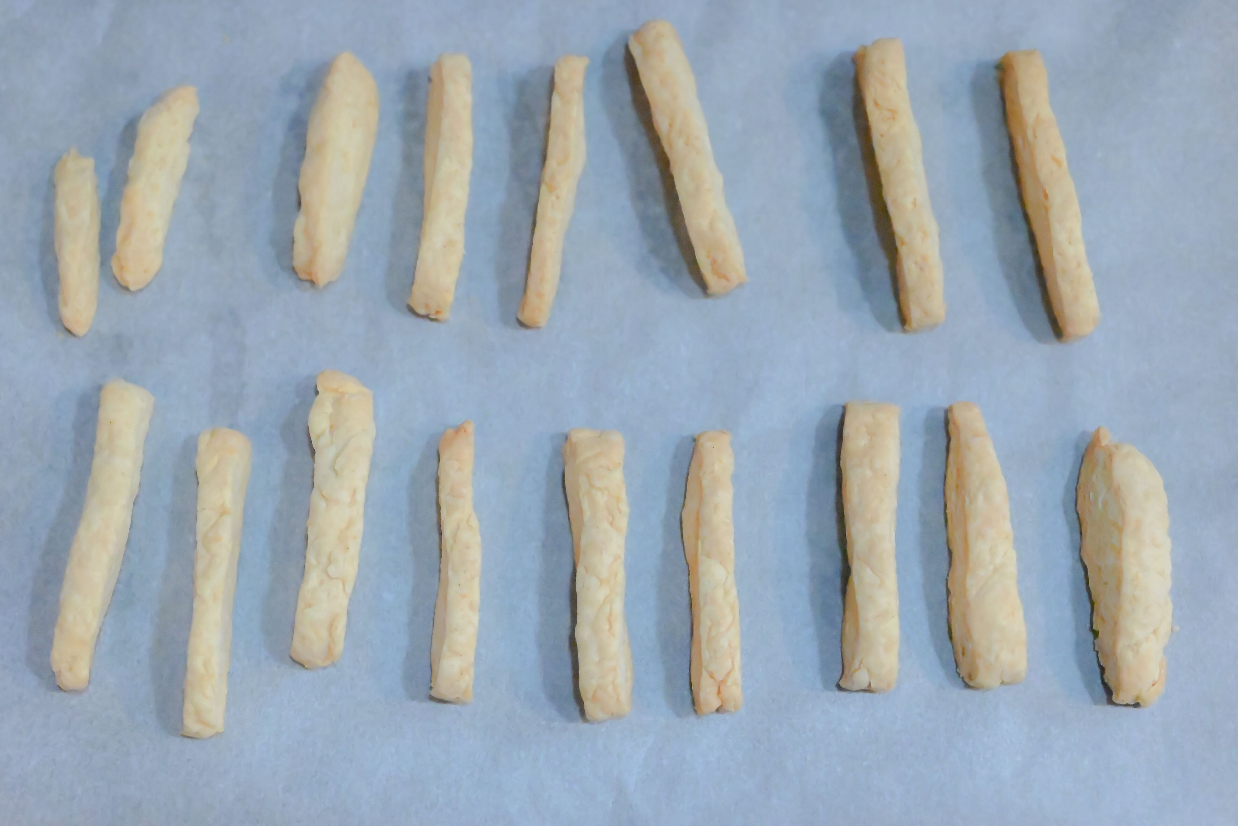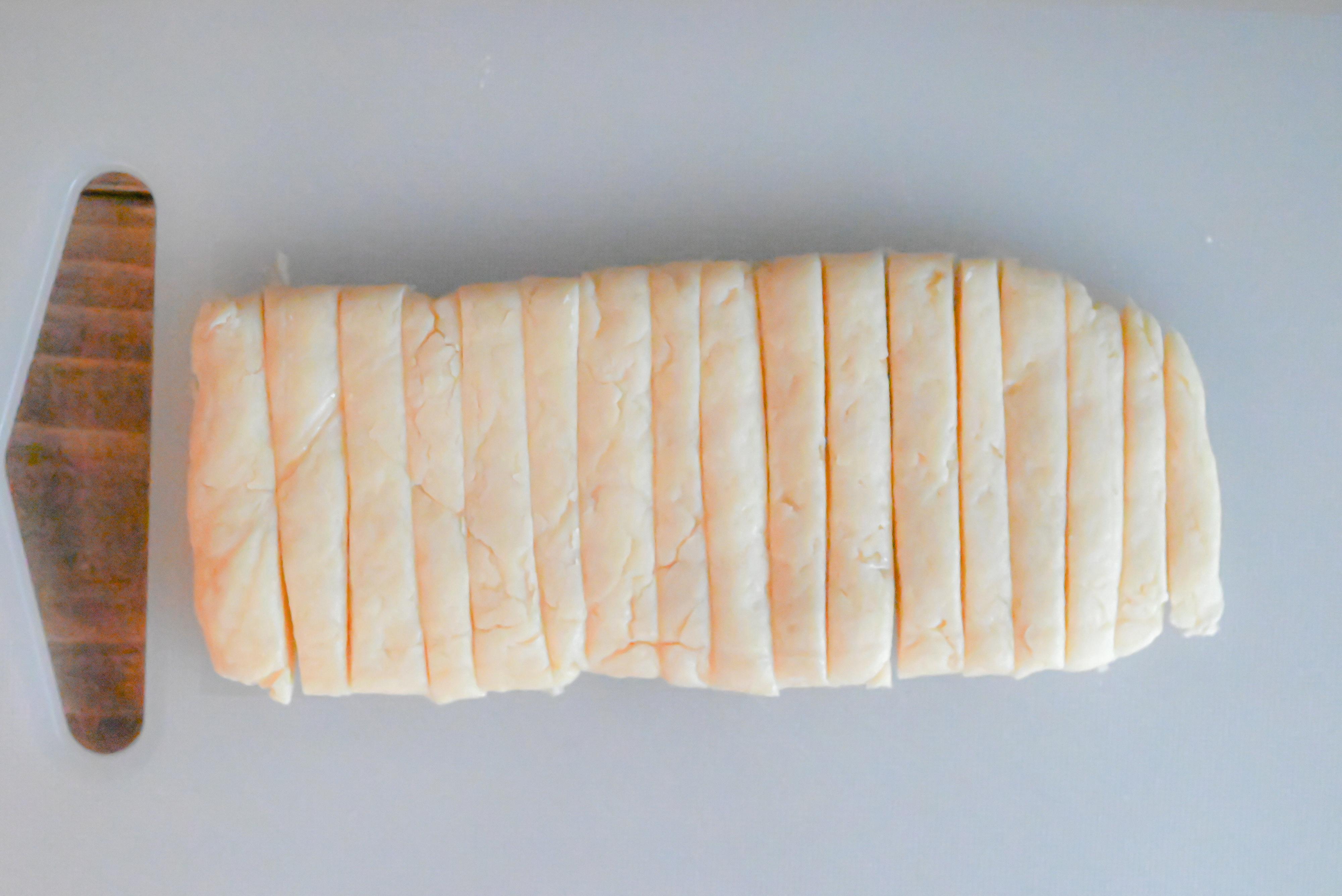 (3)食品用ポリ袋から取り出し、食べやすい大きさに切る。