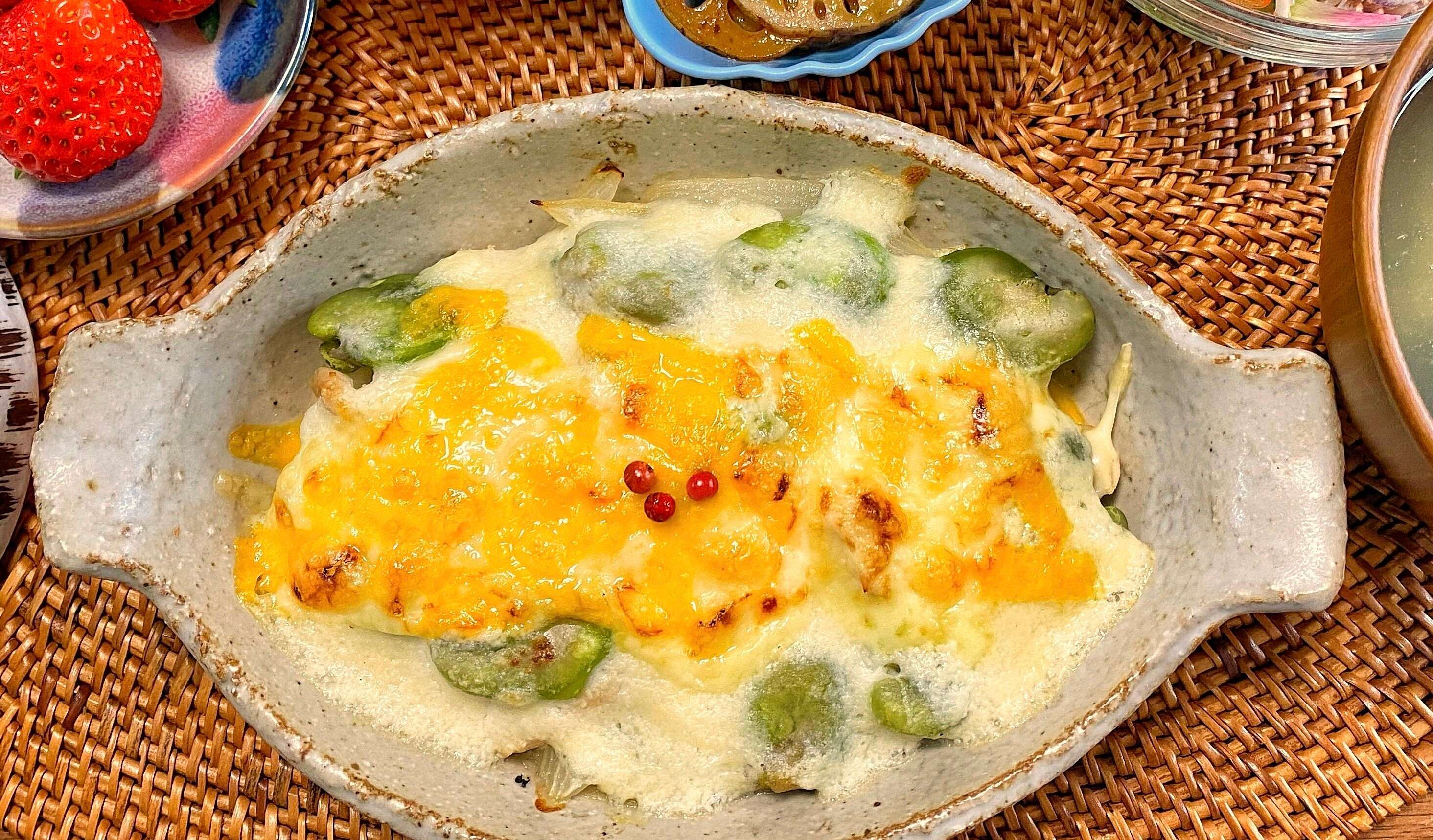 玉ねぎ、鶏肉などお好きな具材をバターで炒め、ホワイトソースとチーズをかけてトースターで焼けばグラタンの完成です。