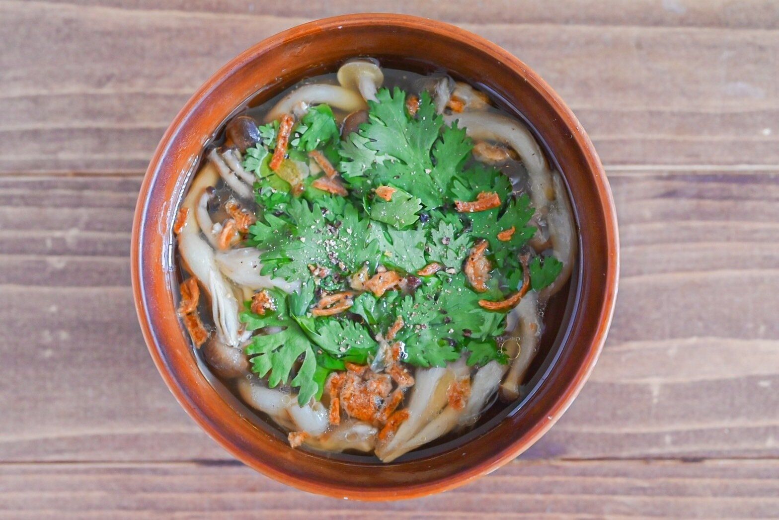 パクチーにプラスしてフライドオニオンを加えるとコクと旨味がさらにアップしますよ。